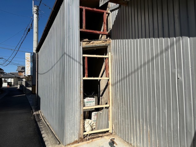 角波の外壁の張り替えです。写真で見えてる右面も交換していきます。下地も板金作業も自社施工です。またアップします。