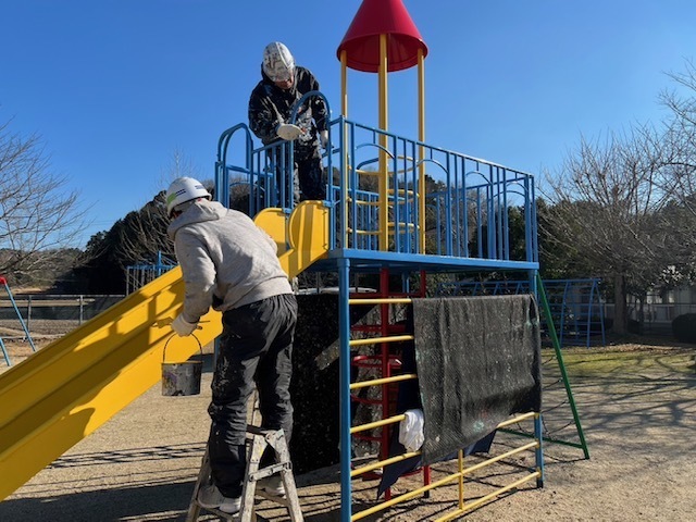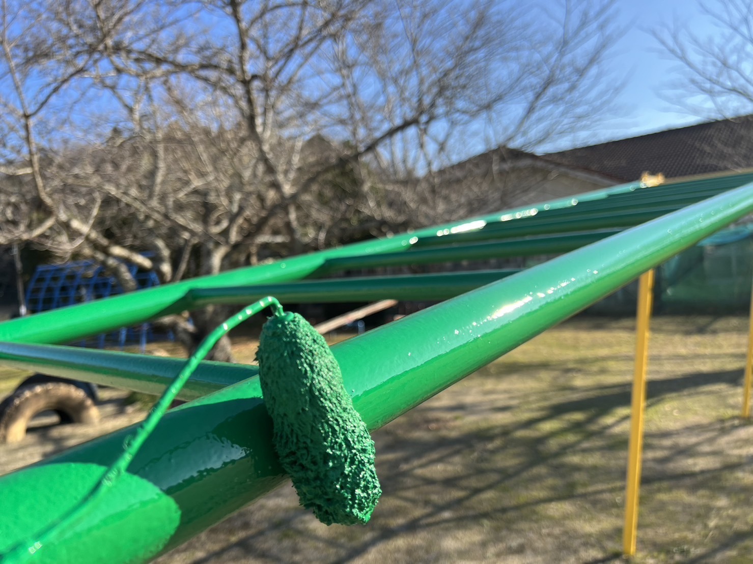 今日も遊具の塗装進めております。生まれ変わった遊具は本当に綺麗です。子供達が楽しく遊ぶ姿が目に浮かびます。またアップします。