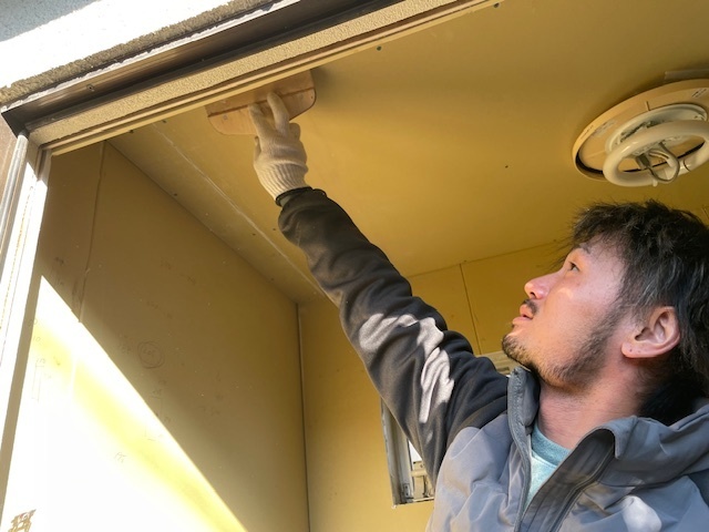パテ作業です。クロス屋さんが忙しいので塗装班でパテしました。明日からクロス工事に入って行きます。またアップします。