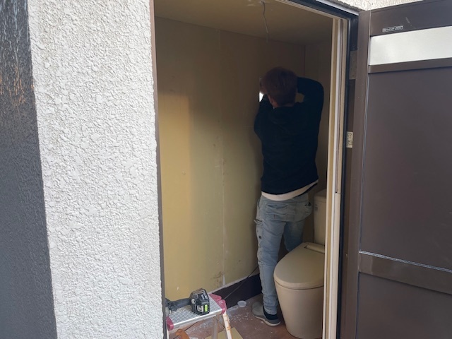 今日はクロスのための下地工事を行いました。建物自体がだいぶ寸法がずれていたのでボードを貼るのも苦労しましたが何とか完了しました。青い部分は白いパネルで保護材が貼ってます。継ぎはクロス工事です。またアップします。