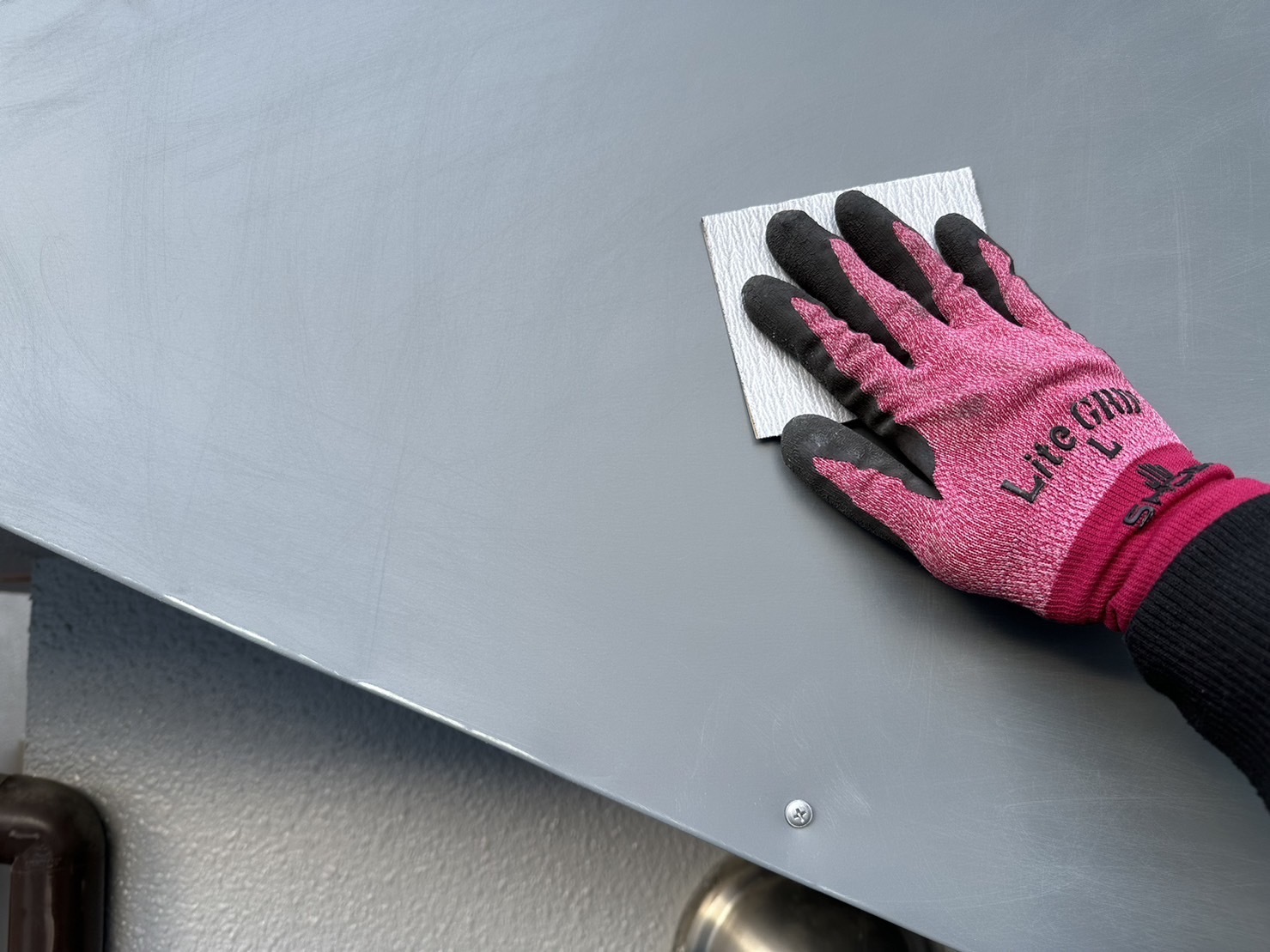 昨日、施工させて頂きました板金に塗装させて頂きました。しっかり目荒しした後に2液のプライマーと遮熱の上塗りで完成です。Yさま大変お世話になり、ありがとうございました。
