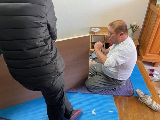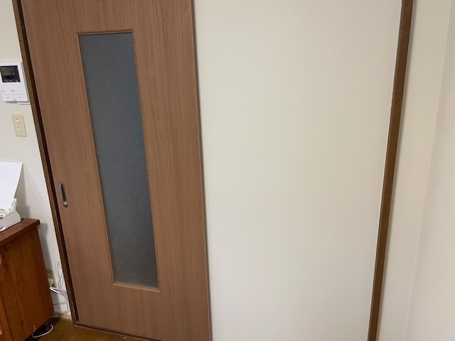 朝から建具の交換させて頂きました。かなり重たかったようで交換後の建具は軽くアルミレールもつけたので快適だと喜んで頂けました。回り縁や巾木工事も午後から実施し残すはロールカーテンのみとなります。またアップします。