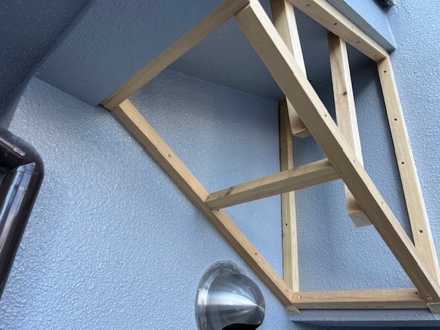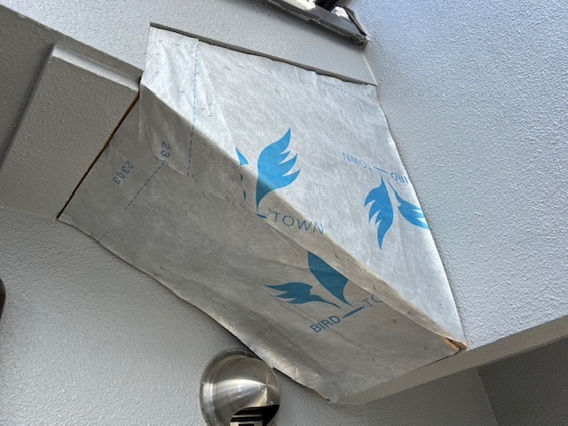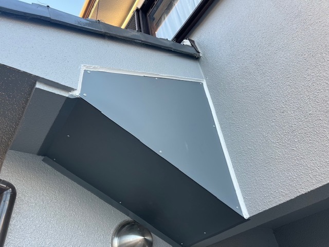軒天の板金工事施工しました。明日はコーキング乾かして明後日に塗装します。遮熱塗料で塗装します。お客様のこだわりでこうすると蜂の巣が出来にくくなるみたいです。またアップします。