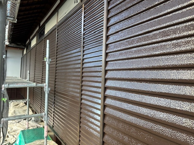 雨戸の塗装の様子です。明日は掃除タッチアップなどを行います。いよいよ足場解体です。完成の様子をまたアップします。