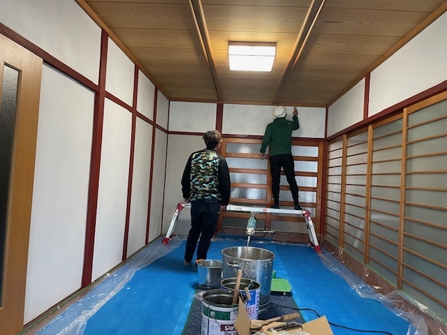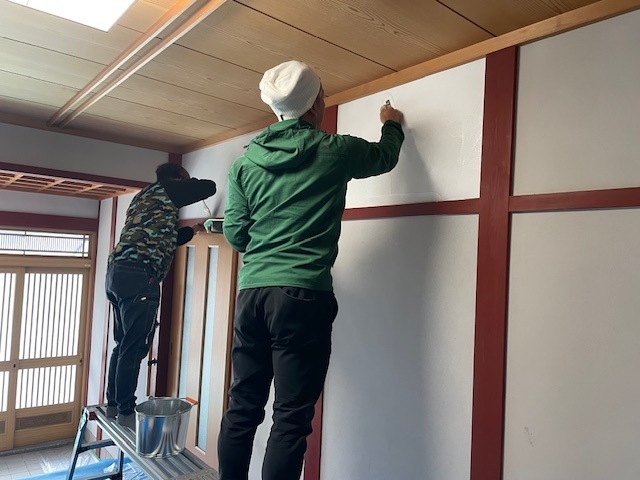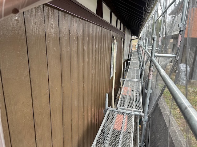 Kさま邸も順調に進んでおります。内部の聚楽壁工事は完了です。乾燥してからコンセントなど復旧して終わりになります。外部も外壁の杉板上塗りやライン出しも完了し残すは雨戸と掃除タッチアップです。いよいよ完成間近です。またアップします。