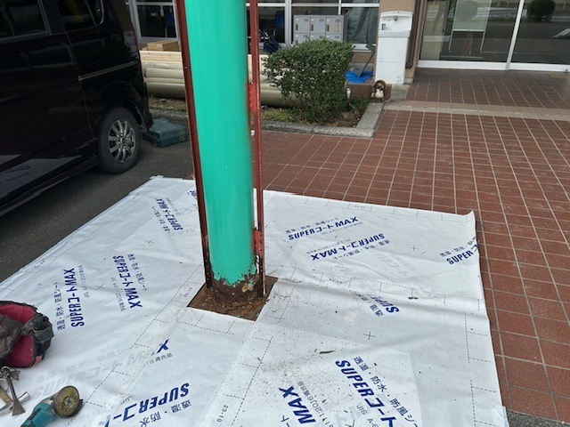 今日から工事入らせて頂きました。先月、施設の外壁塗装をさせて頂いたのですが有り難いことに追加工事を頂きました。既存の柱の交換工事です。サイディングでかっこよく仕上げます。またアップします。