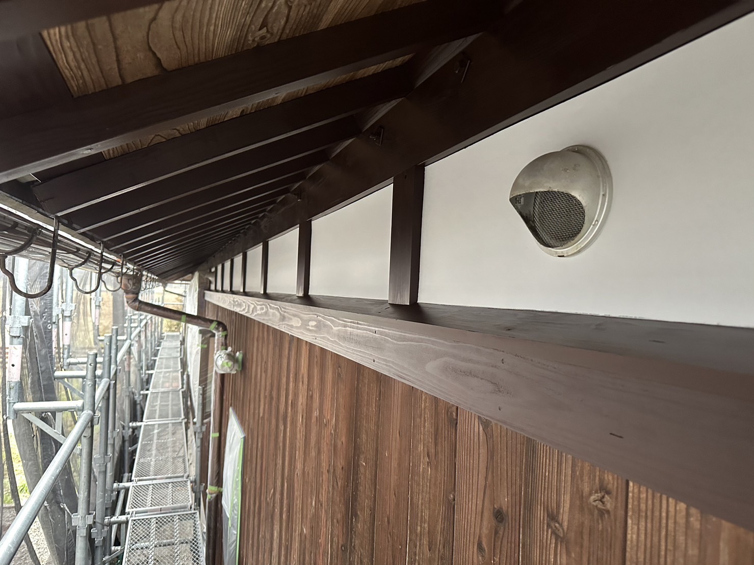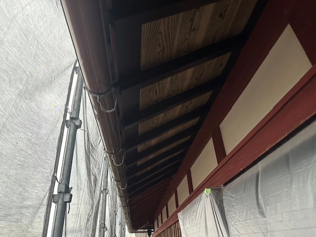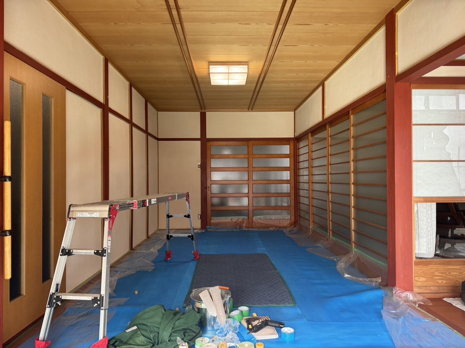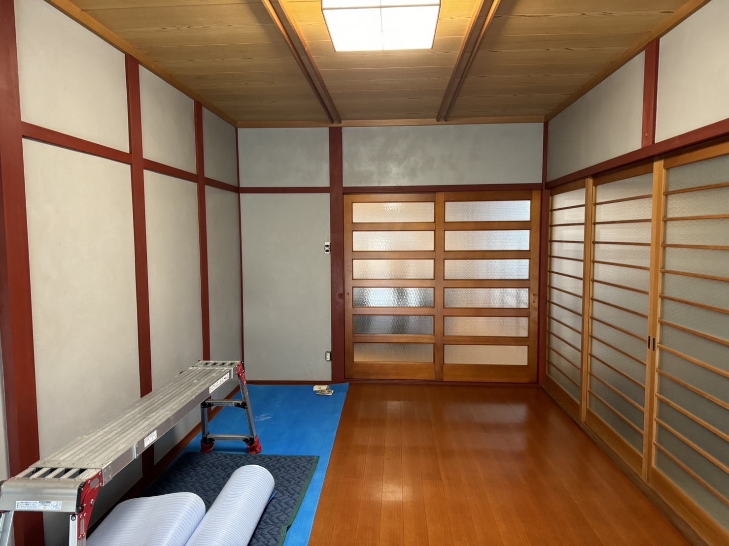 塗装工事も順調です。今日から玄関ホールの聚楽壁の左官工事もスタートです。下塗りは今日で完了しました。次回乾燥後に上塗りです。またアップします。