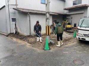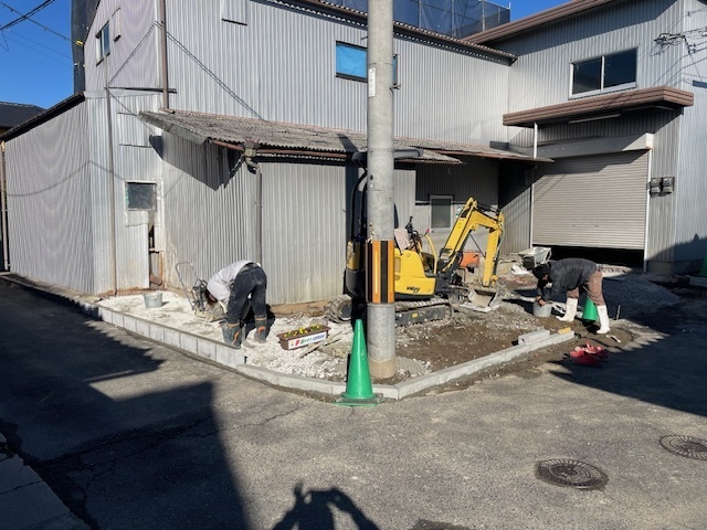 外構工事の様子です。地先やブロックを施工していきます。最終的には土間で仕上げます。フェンスなども設置sルのでまたアップします。