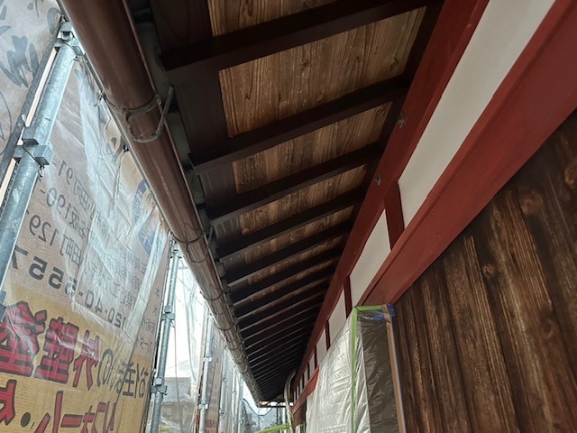 垂木の塗装の様子です。ベンガラで本当に細かな作業ですが綺麗に丁寧に進めてくれてます。またアップします。