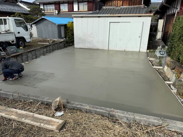 土間や敷板も仕上がりました。本当に素敵な仕上がりです。型枠などを外せば完成です。