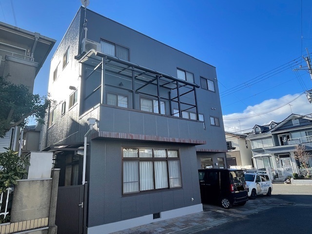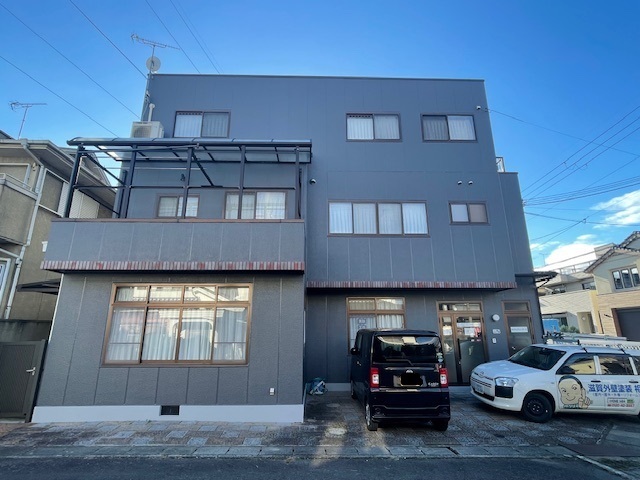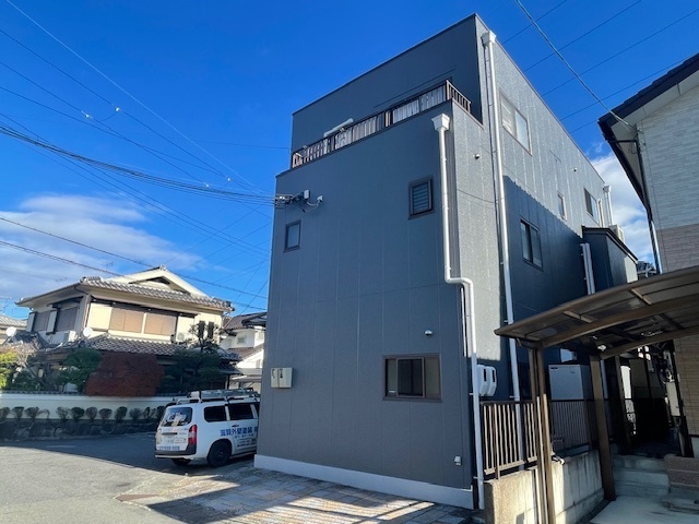Hさま邸、完了しました。大きなお家でしたが順調に工程通りで完了することが出来ました。以前はグリーン系の外壁でしたが今回はグレーで仕上げさせて頂きました。素敵な仕上がりでカッコ良いです。Hさま大変お世話になり、ありがとうございました。