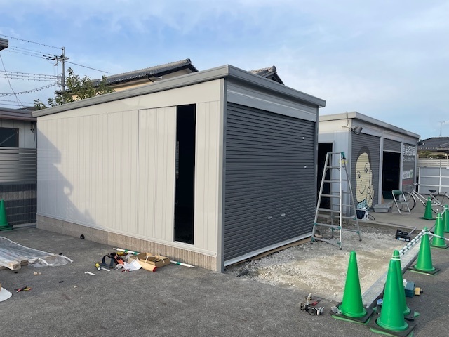 新たに倉庫を設置しました。来週に土間工事を行います。職人さんが手際よく1日で完成させてくれました。またアップします。