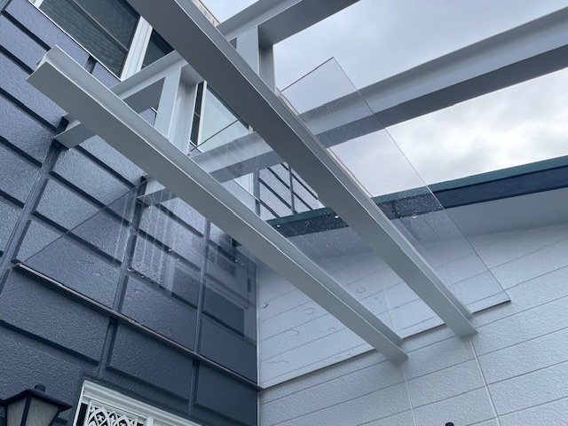 ガラスの庇が日々が入り危ない状態だったのでアクリルの透明板で交換しました。ガラス自体が80kgくらいあって交換大変でしたが無事に作業終了です。Iさま大変お世話になり、ありがとうございました。