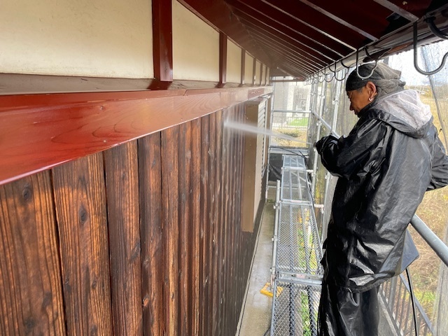 高圧洗浄実施しました。明日は雨なので作業中止です。明後日から養生作業など進めていきます。和風のお家なので仕上がりが楽しみです。またアップします。