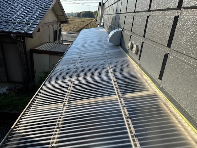 足場も解体したので波板を全て新品に交換しました。外観はこんな感じになりました。白とグレーでシンプルに仕上げました。アイホームの看板も設置されいよいよ内装工事が終わればオープン予定です。またアップします。