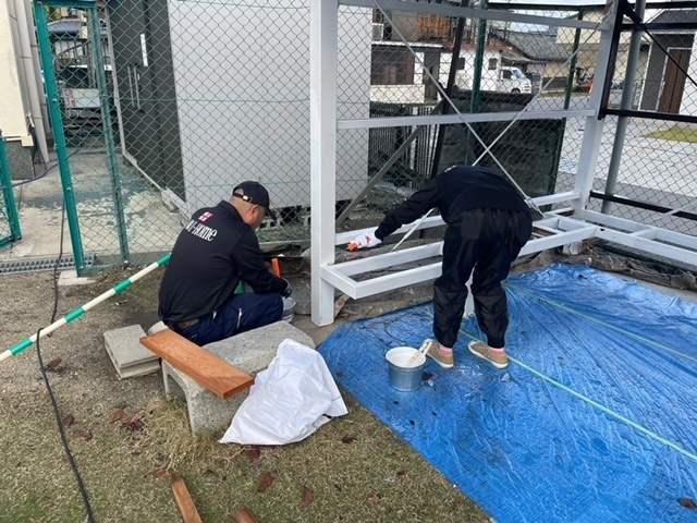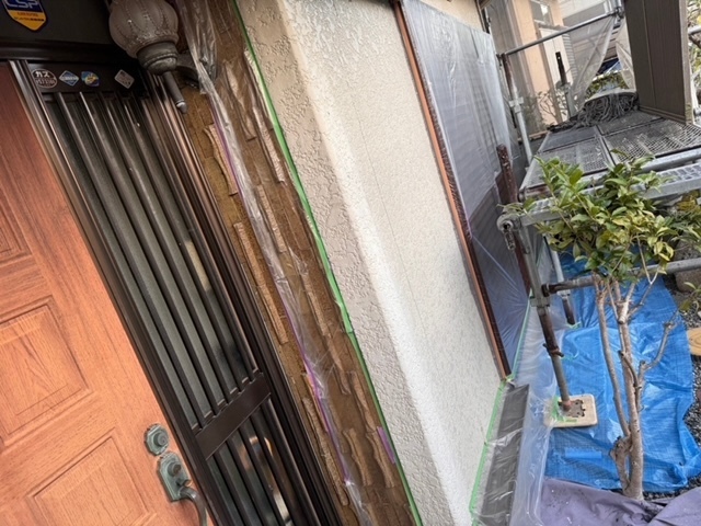 養生作業スタートです。今日から本格的に塗装工事に入って行きます。ここからは連続で進めて行きますので毎日お家の様子が変わっていきますので楽しみにしてください。またアップします。