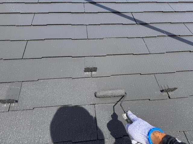屋根の上塗りやシャッターボックスなど塗装を進めました。明日には足場解体前の検査を実施する予定です。細かなところの修正など行います。またアップします。