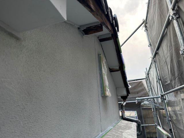 下塗りと軒天の塗装進めました。雨樋も交換するので撤去しました。また進んだらアップします。