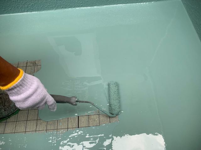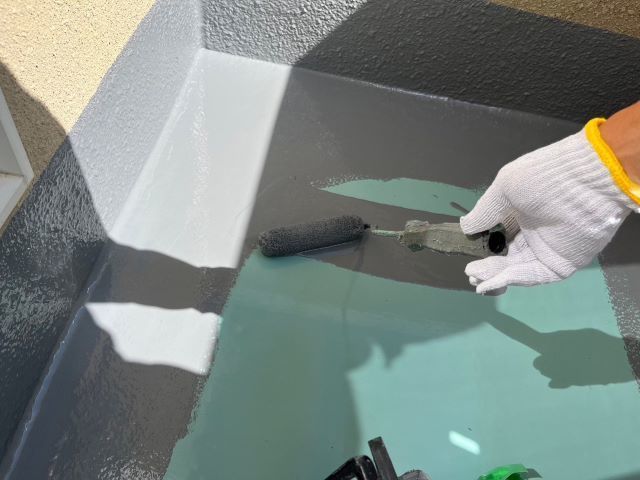 防水工事の様子です。雨漏りの相談から原因調査し防水工事をさせていただきました。先日の夜中の雷雨で雨漏りもしなかったので喜んでいただけました。