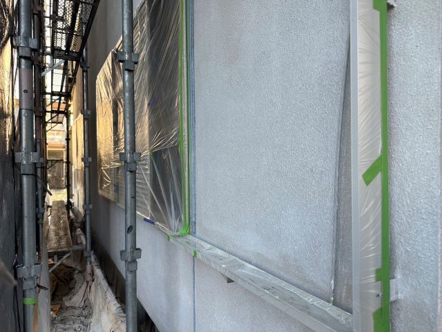 下塗り作業の様子です。リシン壁なので丁寧に吸い込みムラが出ないように塗装していきます。またアップします。