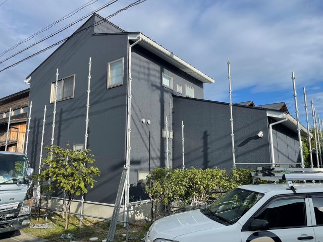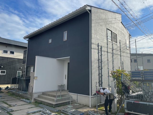 足場解体の様子です。すごく綺麗な色で、ここ最近の人気色です。また完成写真アップします。