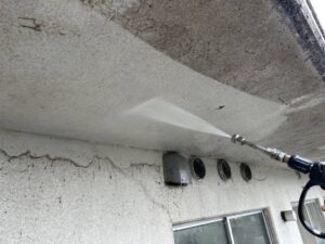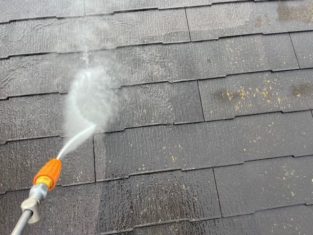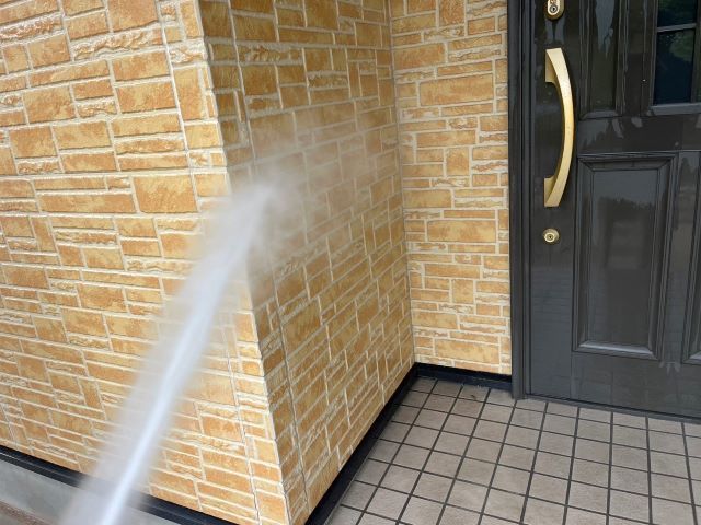 高圧洗浄の様子です。ご近所の方が温かくお声を掛けてくださり、駐車場なども提供してくださいました。本当にご親切に感謝しております!