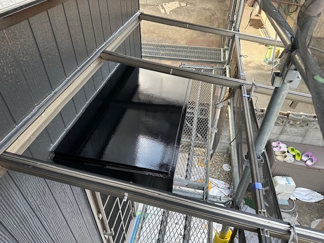 中庭の塗装の様子です。中庭だけ特殊工程になるので塗装終わらせました。順調に進んでおります。月曜日からまた頑張って進めて行きます。