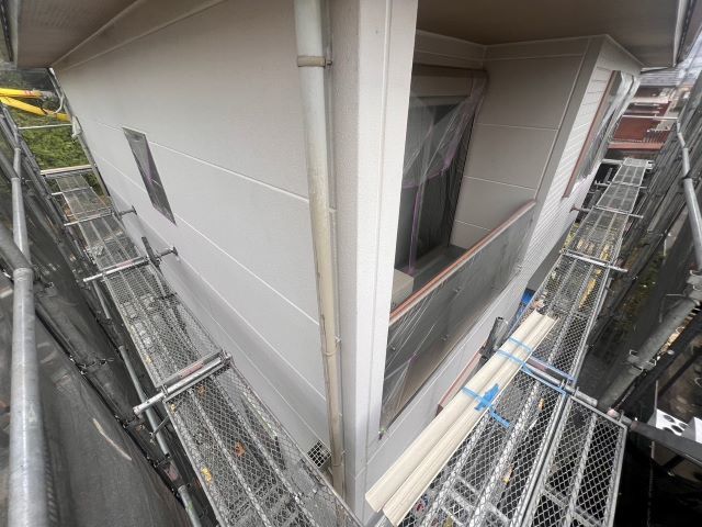 雨樋工事完了しました。明日は高圧洗浄をさせて頂きます。その翌日に足場解体して完工となります。またアップします。