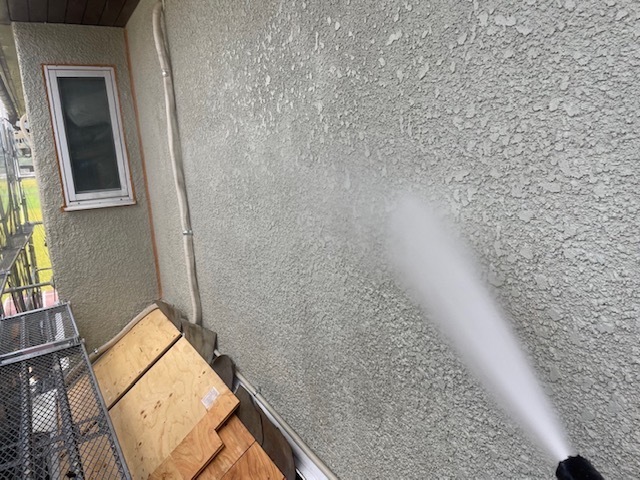 高圧洗浄実施しました。シャッターなど旧塗膜が結構捲れたので塗装前はしっかりケレンして作業進めて行きます。月曜日から養生スタートです。またアップします。