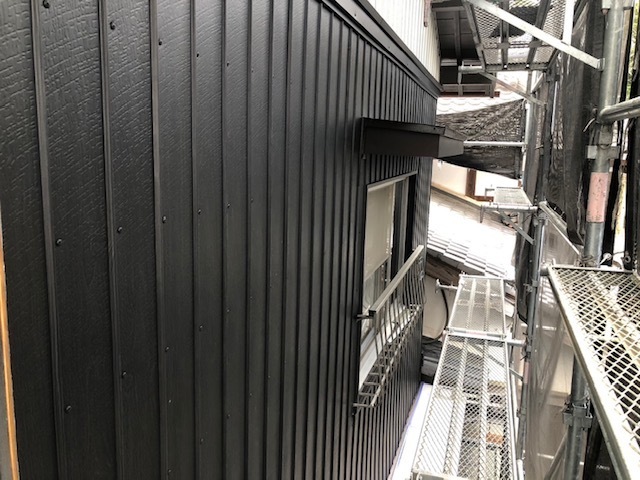 Aさま邸、足場解体完了しました。内装工事やウッドデッキなど塗装はまだ残ってますが完成写真をアップします。本当に新築のようになりました。素敵でカッコ良い仕上がりです。