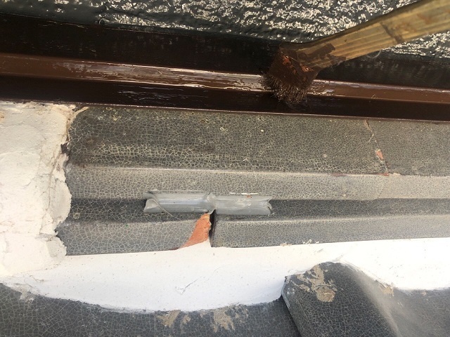 屋根の板金の錆止めの様子です。この時期の屋根の塗装は乾きが早いですが厚くてとてもしんどいですが頑張って今日も進めてくれました。またアップします。