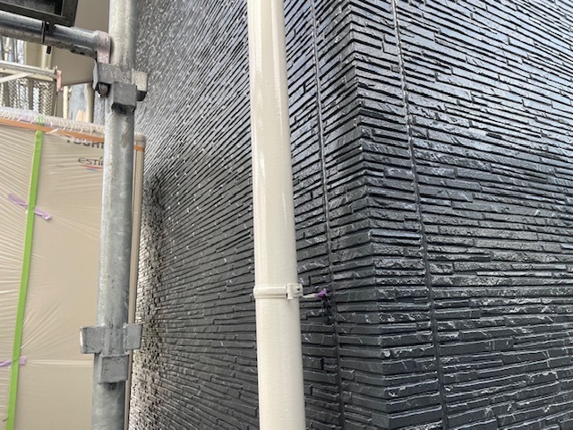 雨樋などの付帯部の塗装を進めております。外壁色とマッチして綺麗な色合いです。Aさま邸も終盤に差し掛かってきました。最後まで気を引き締めて作業進めて行きます。またアップします。