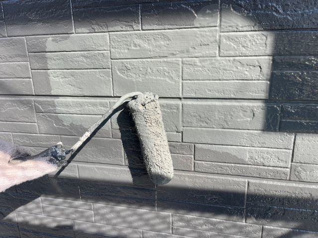 外壁上塗りの様子です。付帯部が多いのですが木部とも良い感じにマッチする色で素敵な仕上がりの予感がします。またアップします。