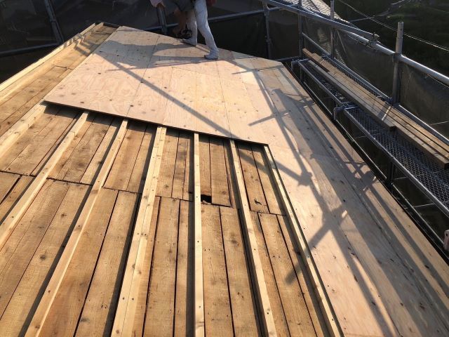 屋根の葺き替えスタートです。日本瓦から立平ルーフへの葺き替えです。下地をしているところです。またアップします。