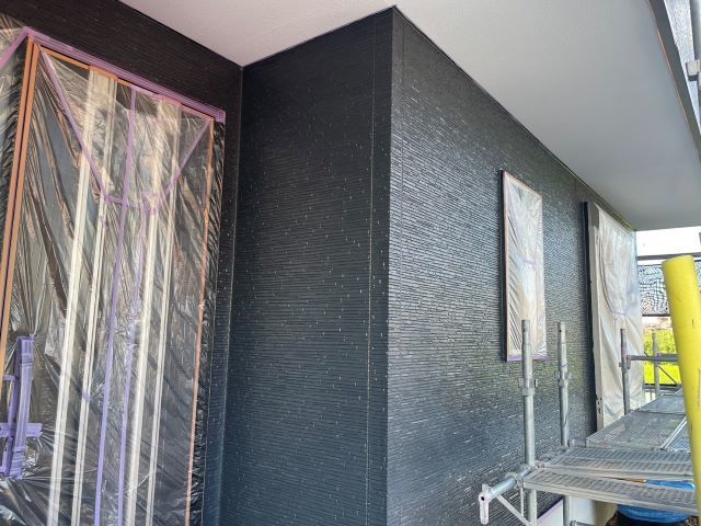 外壁の色が今回はKN-30で塗装していますが外壁の模様ともマッチしとても素敵な仕上りです。人気色で現在も同じ色で三軒同時に工事進めております。またアップします。