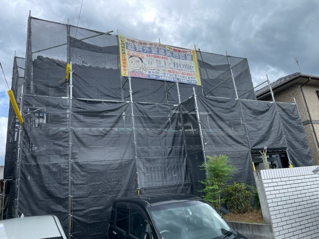 足場完成の様子です。今日は朝からコーキング工事を行いました。ライン出しなど色替えの箇所もしっかり職人がシールしてくれました。二日ほど乾燥させて火曜日に洗浄します。またアップします。