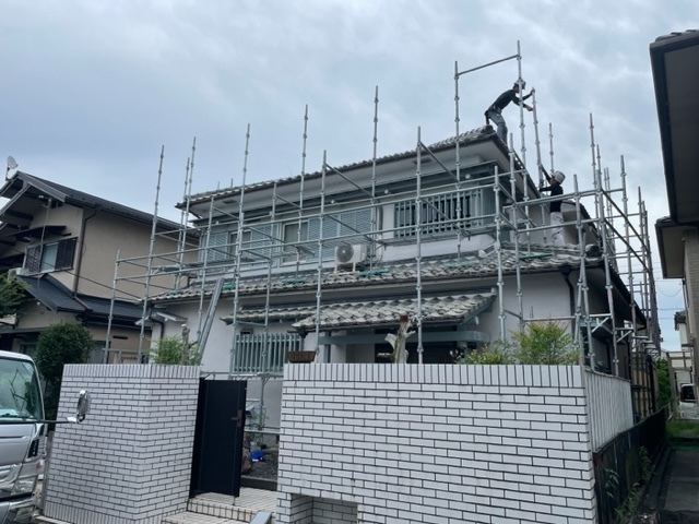 Mさま邸の足場架設の様子です。明日からコーキング工事に入って行きます。また足場の完成写真もアップします。