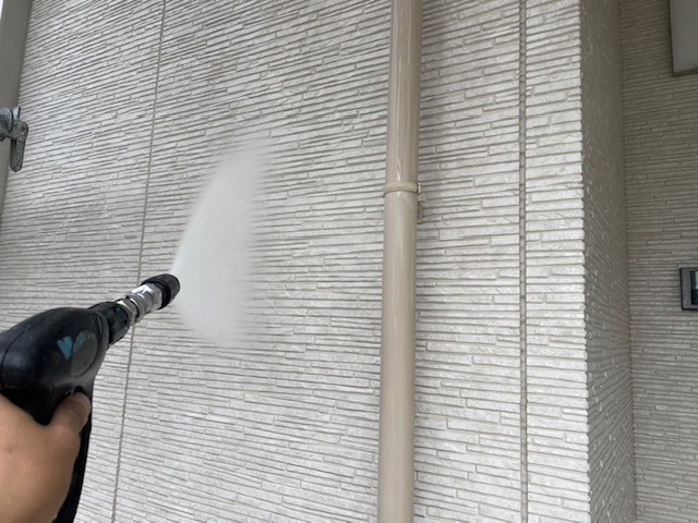 今日は高圧洗浄実施しました。昨日仮設完了した足場の様子もアップします。土日は作業無しで月曜日からオートンイクシードでコーキングしていきます。またアップします。