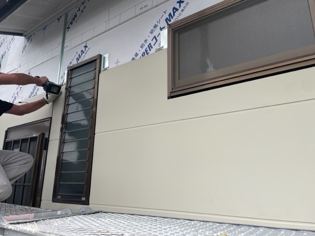コーキング工事とサイディング張替の様子です。オートンイクシードでシールしております。サイディングも順調に進んでおります。またアップします。