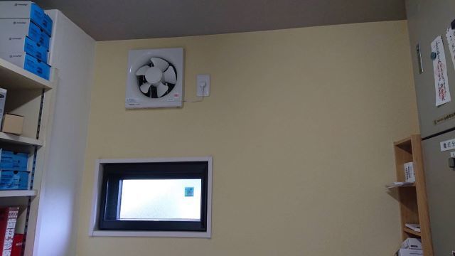 窓の換気扇交換とボード張り替えクロス工事完了しました。