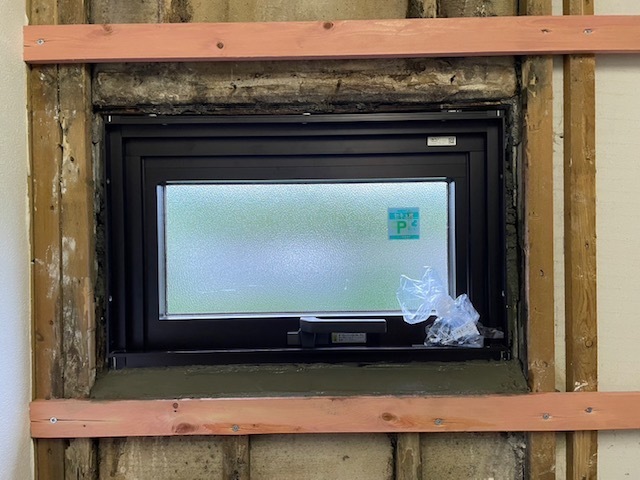 窓の交換工事の様子です。強固なモルタルで固定されており撤去に時間掛かりましたがなんとか窓のハメ込み完了です。明日は傷んだ下地交換して防蟻処理しボードを貼ってクロス仕上げとなります。またアップします。