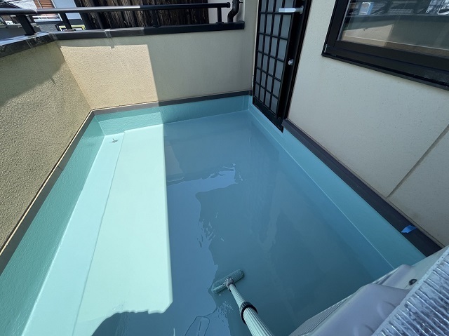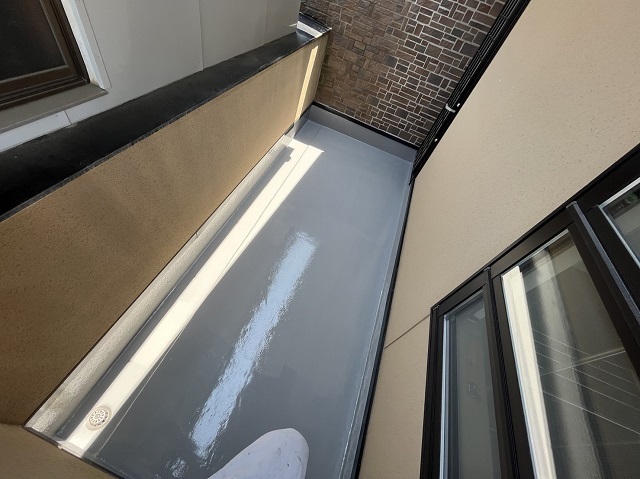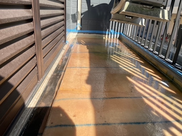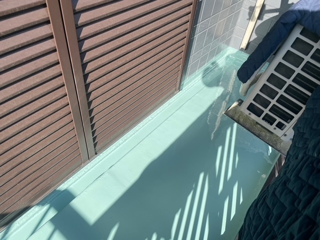 ウレタン塗膜防水を実施しました。雨漏りしていたのでこれで安心ですね^^雨漏りは1箇所だけでしたが3箇所ベランダのあるお家でしたので全部のベランダ一緒に工事させて頂きました。