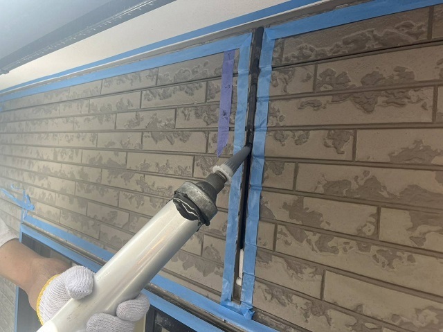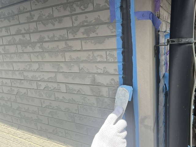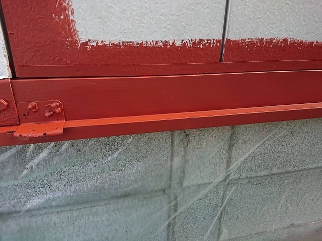 コーキング工事の様子と錆止め塗布の様子です。お店をされていて来客に応じて作業の進め方を変えて工事してます。お客様の要望は少しでも叶えたいので職人一同色々段取りを考えながら進めます^^またアップします。