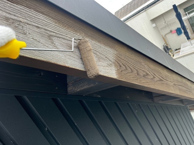 ガードラックアクアの塗装風景です。木部の破風は高い位置になるので自分たちでメンテナンスできないのでご依頼頂きました。今日は1回目の塗装で明日2回目の塗装で完成です。またアップします。