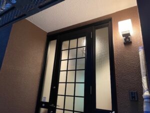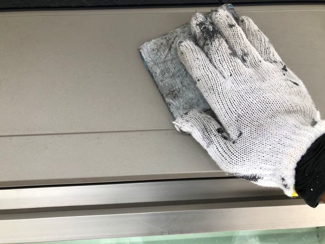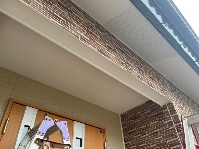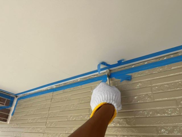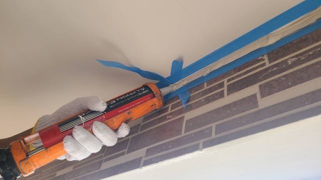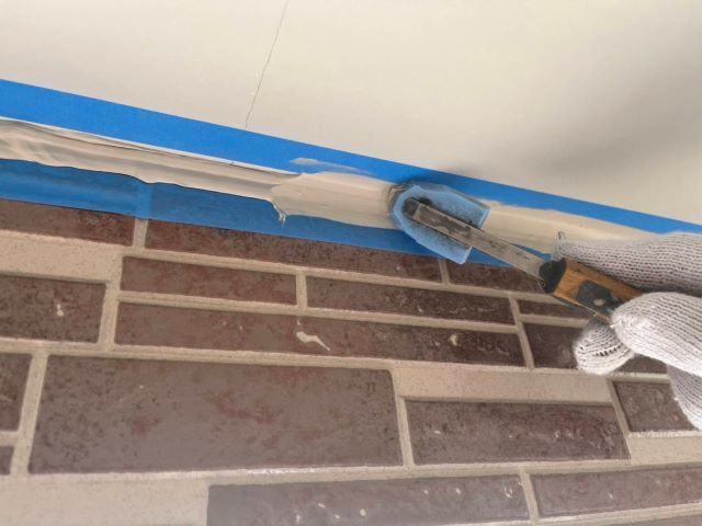 先日交換した軒天のコーキングの仕上げ打ちです。