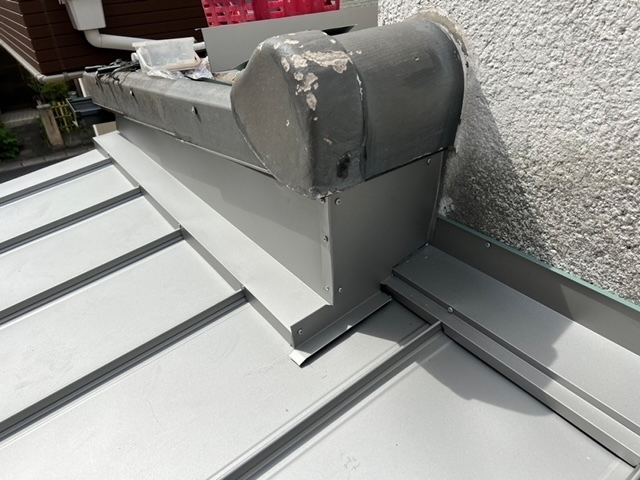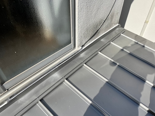 立平ルーフのカバー工法の完成です。壁際や狭いところも上手く板金職人さんが納めてくれました^^これで雨漏りも止まって安心です。Yさま数ある塗装店からアイホームを選んで頂き誠にありがとうございます。