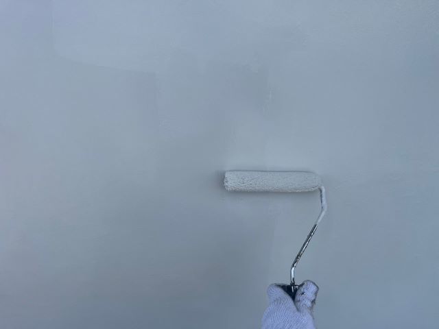 白壁の仕上げの様子です。上塗り3回目の計5回目の塗装です。綺麗な白になりました。またアップします。