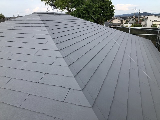 シーラー2回塗布している屋根にタスペーサーやクラックをコーキングで処理した後にガイナで塗装しました。これで今年の暑い夏は涼しいと実感して頂けるのではないでしょうか?楽しみですね^^