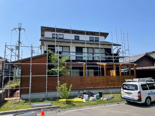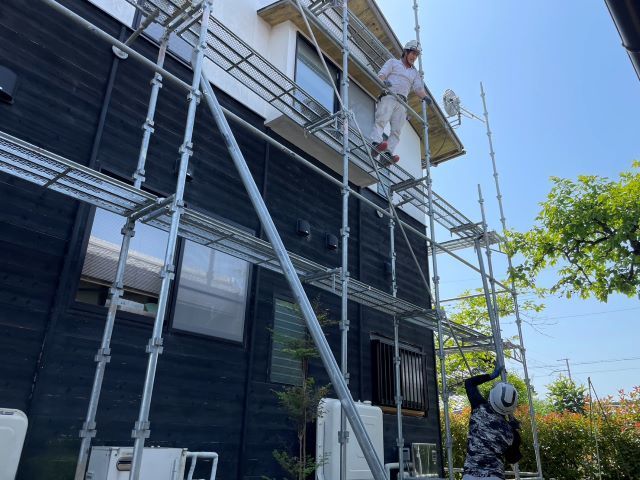 今日は足場架設しました。明日は高圧洗浄です。またアップします。