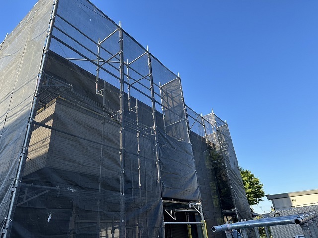 昨日テラス脱着を実施し本日足場架設完了です。